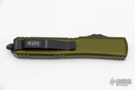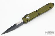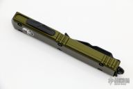 This Ultratech by Microtech Knives features a black bayonet ground blade with sharpened top edge. The handle has an OD Green aluminum frame with black hardware and tip down stainless steel clip, Dated 03/2022 and S/N 239638. Comes with original box. Excellent condition.