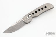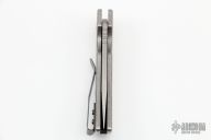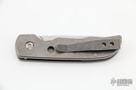 This Ridgeline Auto by Brian Fellhoelter features a tumble finished blade and notched thumbrest. The handle has a stonewash finished titanium frame and a tip up titanium clip. Marked MAGNACUT on blade. New condition. Comes with a zippered case.