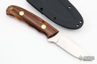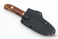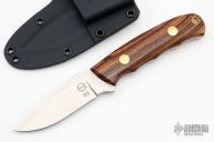 This K-9M Modified Personal Utility by Dozier Knives features a satin finished blade with .125" blade stock and .940" blade depth, full tang construction. The handle has Desert Ironwood scales with brass pin and lanyard hole. Comes with kydex sheath. Excellent condition.