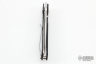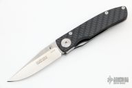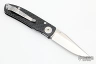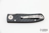 This Model ACC1 is a Walker Design with a satin blade and carbon fiber scales, titanium liner and stainless steel backspacer. Nice detent, lockup and blade seating. Comes with original box, COA and leather case. Excellent condition.