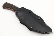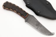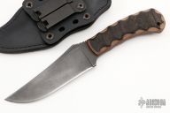 Winkler Knives’ most popular design. Perfectly balanced, the size and shape lend well to most all applications. It is an ideal tool for outdoor enthusiasts and tactical operators, as well. Knife Specifications Blade steel: 80CrV2 Black oxide no-glare finish Blade length: 4 1/2" Overall length: 9" Blade thickness: 3/16" Full tapered tang Thumb index file work Sheath Lined Kydex® with leather cover Designed for multiple carry options (See our Info page for carry options). Has some scratches and scuffs, otherwise good user condition.