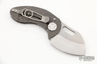 This Nano framelock folder by Curtiss Knives features a stonewashed blade with a textured titanium frame and clip, tip up carry. Comes with a zippered case. Excellent condition.