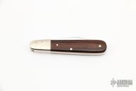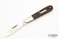 This slipjoint from Hen & Rooster features a polished clip point blade with nail nick. The handle has engraved nickel silver bolsters and ironwood covers over nickel silver liners. Bullet shaped nickel silver escutcheon. Great blade seating, includes a zippered case. Excellent Condition.