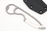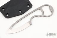 This Neck Knife by Wilmont Knives features a scandi ground blade, notched thumbrest, .147" blade stock and 1.099" blade depth, full tang with bottle opener at the butt. Comes with a kydex sheath. Excellent condition.