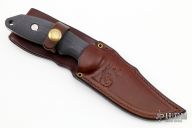 Born with a passion for the great outdoors and touched with passion of the old west comes our new fixed blade hunting/utility knife The Emmett. Released just in time for fall hunting it will prove to be your most trusted hunting companion ready for any tasks put before it. The pedigree for The Emmett comes from the popular FXM but as those familiar with the FXM will note that he is a completely different character. The stout .165” thick blade of CPM20CV starts at the handle in a wide 1.25” perfect for that slicing grind angle. The blade shape is a long “Bowie” style clip with a extra concave thumb rest set in the perfect spot for those hard push cuts. The clip point style front end allows for those fine cuts utilizing the nimble tip of the blade. The handle follows the style of the iconic XM-18 series of folders with its very ergonomic profile that begs this knife to be used for long periods of time. With the addition to the Emmett line we added contoured handles that fill out your grip comfortably while adding eye-popping appeal. And finally finishing off the grip is perfectly situated fine thumb jimping ensuring a solid grip while using the knife in a fencing grip. For the Emmett we again chose Woodland Harness for a exceptional leather sheath. The Emmett is that knife and hunting companion that is worthy of handing down through generations of outdoor enthusiasts!