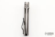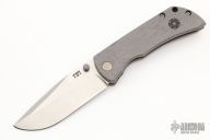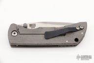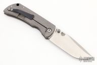 This MAC2 features a stonewashed drop point blade with dual thumbstuds and a notched thumbrest.  The handle features a laser engraved and anodized titanium frame with a matching tip up pocket clip.  Includes box and papers. Excellent condition.
