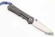 This Large Inkosi from Chris Reeve features a tumble finish blade with dual thumb-studs and a bead blast titanium frame. Bead blast titanium clip, tip up carry.  Comes with original box, and papers dated August 8, 2022.  CPM S45VN blade Steel. Nice detent, and blade seating. Excellent Condition.