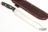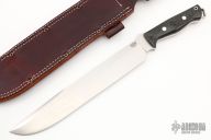 This Bravo 3 from Bark River features black canvas micarta scales, full tang construction with .277" blade thickness and 1.680" blade depth. Satin finished blade. Comes with a leather sheath. Excellent condition.