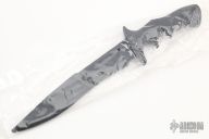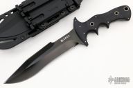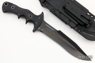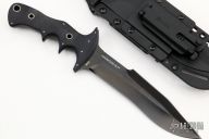 This Hammond Flesh Eater by CRKT features a black double edged blade with notched thumbrest, .238" blade stock and 1.461" blade depth, hidden tang construction. The handle is two-piece black G-10 with hollow tube pins. Comes with molded plastic sheath with 3 MOLLE clips, and a rubber trainer. #2208 on blade. Excellent condition. Comes with original box and papers.