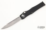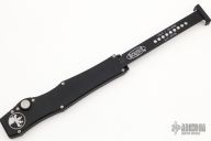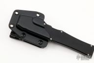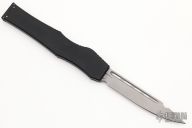 This Halo V by Microtech features a bead blast finished blade. The handle has a black aluminum frame with blasted hardware. Comes with a kydex sheath with TekLok. Comes with original box and papers. Dated 05/2014 and s/n 05726. Light scuffs/scratches are visible on the blade and frame otherwise the knife is in good condition.