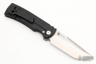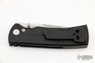 This Chaves Ultramar Redencion drop point features a satin finished blade with the Chaves logo. The handle is made up of black G-10 presentation side, black PVD coated titanium lockside, skull pocket clip (positioned for tip up carry), and matching titanium backspacer. Blade is centered when closed, and locks up with no play.  Includes the original box.  Excellent Condtion.