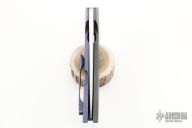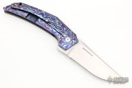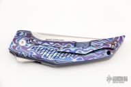 This Heat Seeker by Tashi Bharucha features a hand rub satin finished ELMAX SUPERCLEAN blade with flipper. The handle has a Zirconium and MokuTi frame with matching tip up clip. Comes with a zippered case and original dogtag. Excellent condition. This knife was from the 2019 Blade Show.