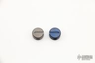 These beads by Shirogorov Knives are designed to look like the pivot on a Shirogorov knife. 0.314" titanium construction. One is Anodized and tumbled titanium the other is tumbled. Excellent condition.