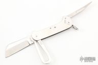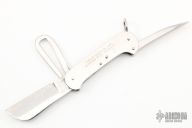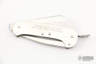 This knife features a wharncliffe blade with a single nail nick.  The knife features a blade, shackle key and marlin spike.  The handle features a stainless steel construction.  Scuffs and scratches are visible otherwise this knife would make a good user.