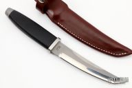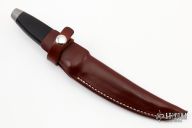 #13 of 20 USN Edition of Vauhn Neeley's Tanto. Heavy .255" stock and 1.035" blade depth, hidden tang construction. Polished grinds and bead blast flats. The handle has a satin stainless guard, black linen micarta grip, and bead blasted titanium butt. Beautiful piece of art. Comes with Neeley's brown leather sheath.  Excellent condition. Originally made for the 2014 USN Show.