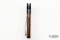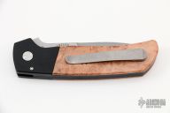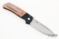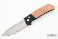 This ATCF Auto by Pro-Tech features a stonewashed Magnacut blade with notched thumbrest. The handle has a black aluminum frame with maple burl scales, tip up 3d milled titanium clip with hidden screws. Comes with original box and papers. New condition.
