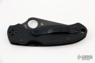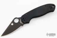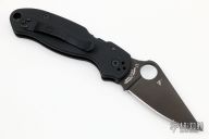 This Para 3 by Spyderco features a black finished clip point blade with thumb hole and notched thumbrest. The handle is comprised of black G-10 scales over nested steel liner and stand-offs. The steel pocket clip is 4 way adjustable. Includes original box and paperwork. New condition.