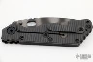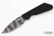 This SMF from Strider Knives features a tiger stripe blade and textured black G-10 and flamed titanium handle and matching tip up titanium clip. Notches on thumbrest, rear of handle, and lockup. Includes Hinderer "Lock Bar Stabilizer" for maximum reverse lock retention. New from maker at the 2022 USN Gathering.
