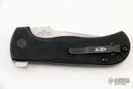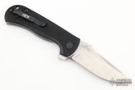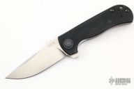 This 0909 by Zero Tolerance is a collaboration with Les George. Features a tumble finished blade with notched thumbrest and flipper. The handle has black G-10 scales, bead blasted stainless steel liners, black barrel spacers and a tip up reversible black stainless steel clip. #4571. Excellent condition.