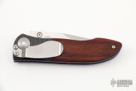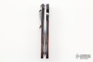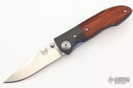 The 690 Elishewitz is a discontinued linerlock folder by Benchmade. It features a clip point satin finished blade with carbon fiber dovetailed bolsters, rosewood scales, and anodized titanium liners, tip down stainless steel clip. Excellent condition.