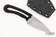 This Necker from Gavko Knives features a bead blasted blade with .132" blade stock and 1.060" blade depth, cord wrapped handle. Coems with a kydex sheath. Excellent condition.