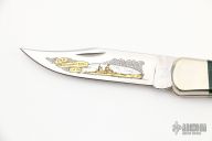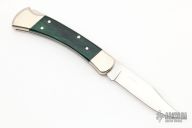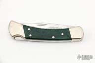 This Model 110 by Buck features a laser engraved blade with nail nick. The handle has a nickel silver frame with wood scales. Comes with original presentation box and papers. #77 of 100 on blade. Excellent condition.