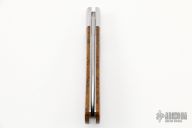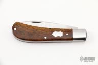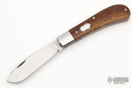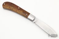 This slipjoint by Manual Saldana features a hand rub satin finished blade with nail nick. The handle has satin finish bolsters, rag micarta covers, stainless steel liners and spring. Has half stop, flush in all positions. Comes with zipper case. Has some light scratches, otherwise excellent condition.