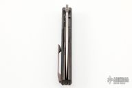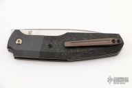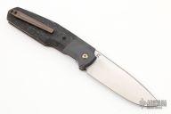 This linerlock was designed by Philippe Jourget and manufactured by CKF. This knife features a hand rub satin finished drop point blade with a file worked thumbrest. The handle is composed of titanium liners, zirconium bolsters and carbon fiber scales. Titanium tip up pocket clip. #121. Includes a padded Velcro case. Excellent condition.