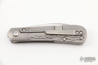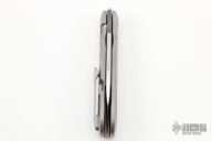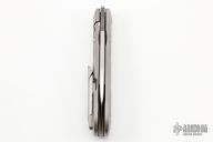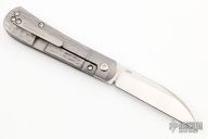 This Swayback Front Flipper by Enrique Pena features a satin finished blade with a front flipper and notched thumbrest. The handle is composed of jigged titanium with a matching backspacer and tip up pocket clip. Includes a Pena X-Series padded box. Excellent condition.