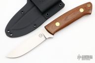 This K-22 Buffalo River Hunter by Dozier Knives features a satin finished blade, .135" blade stock and .911" blade depth, full tang construction. The handle has natural canvas micarta scales with brass pins and lanyard hole. Comes with kydex sheath with belt clip. New from maker.