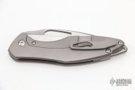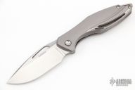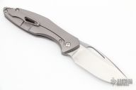This Arius Style 55 Non-Flipper by Koenig knives features a hand rub satin finished blade with thumbhole. The handle has a bead blasted and milled titanium frame with Style 55 Milling, titanium backspacer and tip up clip with hidden screws. Has ceramic bearings and a ceramic detent ball. Nice detent, lockup and blade seating. Comes with original box and COA dated May 31, 2022. Has a couple of light scuffs, otherwise excellent condition.