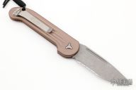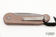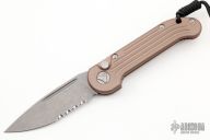 This LUDT auto by Microtech Knives has a stonewash partially serrated edge and a tan aluminum frame with bead blasted hardware. Stainless steel clip. Dated 04/2017 and serial number 05216. Comes with original box and papers. Excellent condition.