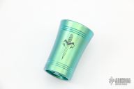 Anodized titanium shot glass with Marfione Dagger Logo. Excellent condition.
