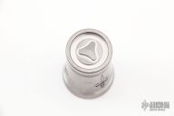 Stonewashed titanium shot glass with Marfione Dagger Logo. Excellent condition.
