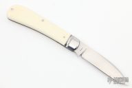 The Zulu Spear by the Late Tony Bose features a hand rub satin finished blade with swedge and a single nail nick. The handle has fluted stainless steel bolsters, interior mammoth covers, stainless steel escutcheon, liners and spring. Has half stop, flush in all positions. Comes with a zippered case.  Excellent Condition.