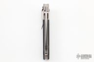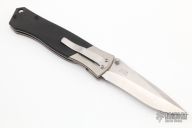 This is a Boker/Brend collaboration is Discontinued. The blade is satin finished with dual knurled thumbstuds. The handle has titanium bolsters, textured black G10 scales, stainless liners and tip down stainless clip. Nice detent, lockup and seating. Excellent condition. Comes with a zippered case.
