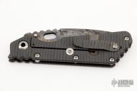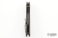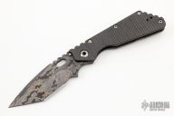 This SMF XL framelock folder by Mick Strider features a drop point blade with a "Digicam" finish, notched thumbrest and a thumbhole. The handle has a tiger striped titanium frame with matching tip up titanium clip. Includes Lock Bar Stabilize for maximum reverse lock retention. Nice detent, lockup and blade seating. New condition.