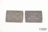 2 American Flag Mosaic Damascus Tiles. Both are approximately 1.75" x 1.25" x .130" We were told this might be Robert Eggerlings Damascus, but I cannot be 100% sure.