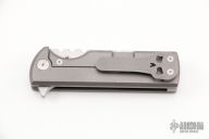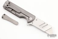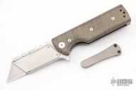 The CHUB (Chaves Handy Utility Blade) Flipper from Ramon Chaves features a replaceable utility blade. The handle has a green micarta scale, stonewashed titanium frame and a reversible titanium skull pocket clip. Comes with the original box and a second titanium pocket clip.  Excellent condition.