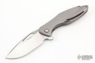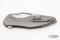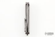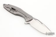 This Arius Style 55 by Koenig knives features a hand rub satin finished blade with thumbhole and notched flipper. The handle has a bead blasted and milled titanium frame with Style 55 Milling, titanium backspacer and tip up clip with hidden screws. Has ceramic bearings and a ceramic detent ball. Nice detent, lockup and blade seating. Comes with original box. Gen 4 #164. Excellent Condition.