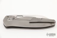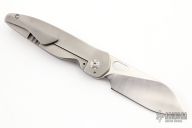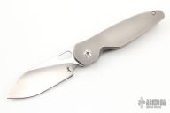 This Stray by Keanison Knives features a dark stonewashed blade with thumbhole and flipper. The handle has bead blast finish titanium scales, stainless post, and a tip up titanium clip with hidden screws. Rides on Skiff bearings, nice detent, lockup and blade seating. Comes with original box and COA dated 2/5/20. Excellent condition.