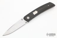 This F22 was designed by Jared Oeser, manufactured by Reate Knives and features Lee Williams Kickstop.  This knife features a satin finished blade with a notched flipper tab.  The handle has carbon fiber scales with a titanium backspacer, tip up pocket clip and escutcheon. The knife opens with the use of Lee Williams' Kick Stop flipper.  Includes the original box.  New from Maker!