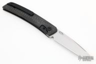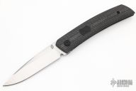 This F22 was designed by Jared Oeser, manufactured by Reate Knives and features Lee Williams Kickstop.  This knife features a satin finished blade with a notched flipper tab.  The handle has carbon fiber scales with a pvd coated titanium backspacer, tip up pocket clip and escutcheon. The knife opens with the use of Lee Williams' Kick Stop flipper.  Includes the original box.  New from Maker!