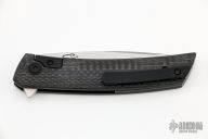 F22 KickStop Flipper Knife, Machine Satin Blade, Carbon Fiber Handles,Option 2 Black PVD Accents