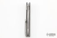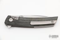 This F22 was designed by Jared Oeser, manufactured by Reate Knives and features Lee Williams Kickstop.  This knife features a satin finished blade with a notched flipper tab.  The handle has black micarta scales with a titanium backspacer, tip up pocket clip and escutcheon. The knife opens with the use of Lee Williams' Kick Stop flipper.  Includes the original box.  New from Maker!