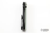 This Chaves Ultramar Redencion Tanto features a black finished blade with the Chaves logo. The handle is made up of jade G-10 and black PVD coated titanium frame, skull pocket clip (positioned for tip up carry), and matching titanium backspacer. Blade is centered when closed, and locks up with no play. Comes in the original packaging. Has some scuffs and scratches, otherwise good condition.