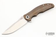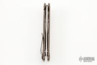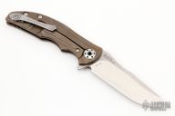 This 0609 RJ Martin flipper by Zero Tolerance features a satin finished blade with stonewashed flats, notched thumbrest and flipper. The handle has a milled and anodized titanium frame with a tip up reversible stainless steel clip. Rides on bearings, nice detent, lockup and blade seating. S/N 0106. Has a couple light scuffs, otherwise excellent condition.