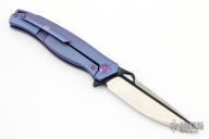 The 606 model is absolutely awesome in every way imaginable. It's a gorgeous knife that can flex between tactical and everyday carry tasks with ease. We love the wicked cool blade shape, ergonomic handle, and lightning fast action this knife possesses - it makes you want to carry and use this knife whenever you possibly can. The 3.5" drop point blade is made from CPM-S35VN stainless steel with a two-tone finish. The action riding on ceramic ball bearings is buttery smooth and the lockup is nice and tight. The ergonomic handle is made from contoured 6Al4V titanium with a blue anodized finish, purple custom hardware, and beautiful carbon fiber inlays. The shape locks it into your hand and the thumb ramp is perfectly executed for comfortable extended cutting tasks. The pocket clip, backspacer, screws, pivot cap, and washers are all 6Al4V titanium for maximum quality assurance and you have a replaceable lockbar insert for longevity. You can use this knife for anything from self-protection to slicing open mail and everything in between.