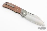 This knife features a hollow grind M390 blade, Titanium frame, Natural Canvas Micarta Scales. Includes original box and papers. #185/300 Excellent Condition.