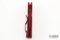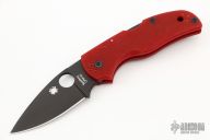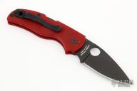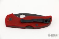 This Native 5 by Spyderco has a plain edged black blade and red G-10 handle with black stainless clip, 4-way reversible. Includes original box and papers. Has a couple light scuffs, otherwise Excellent condition.